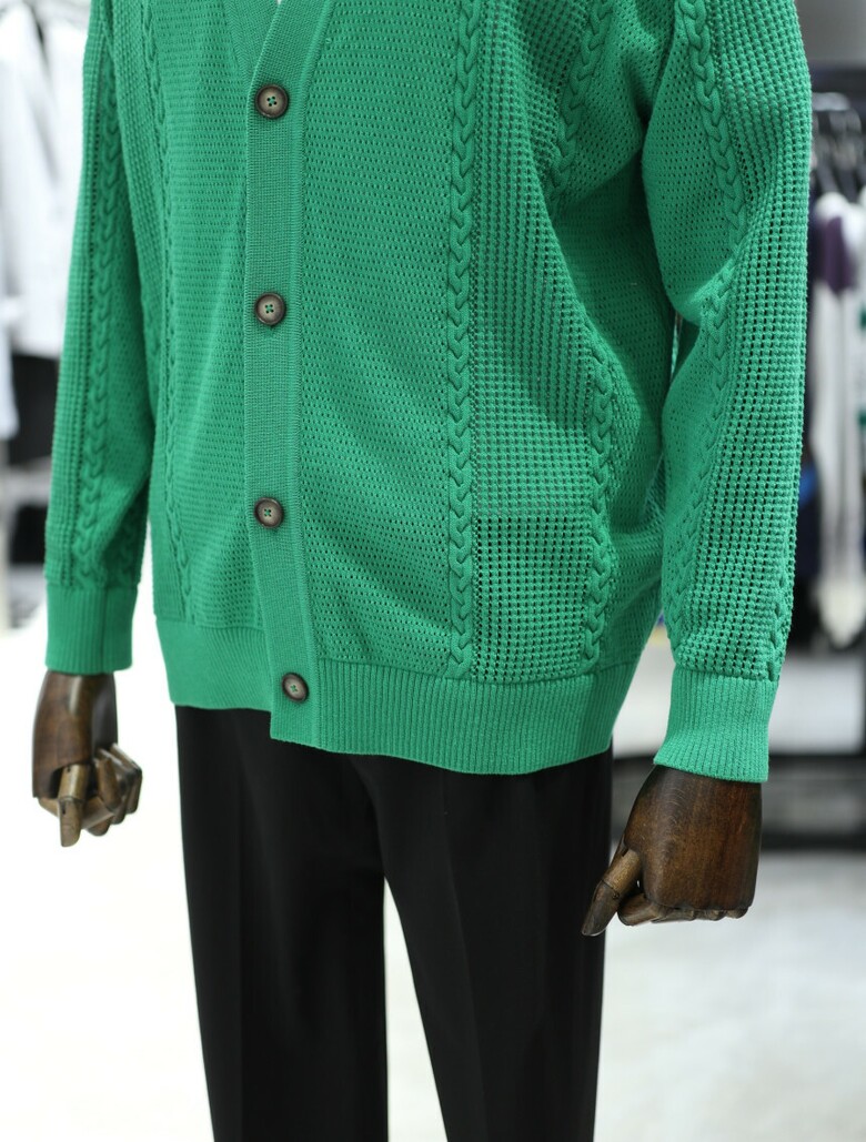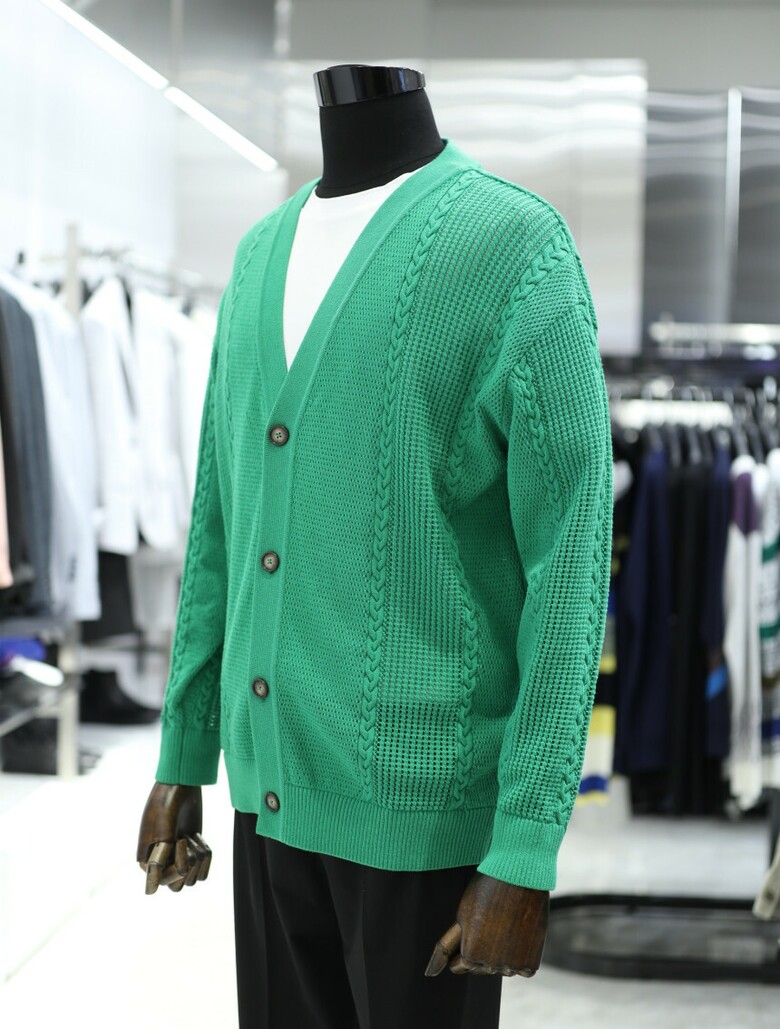 [가넷옴므] 그린 오버핏 메쉬 케이블 가디건 GBS35202