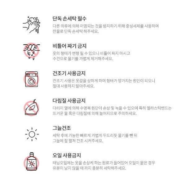 | 6. 세탁방법 및 취급시 주의사항 | 취급상 주의사항 참고해주세요 |