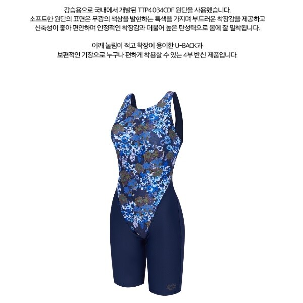 아레나수영복 A3FL1LH23 여성 일반 4부 U백 반신 수영복