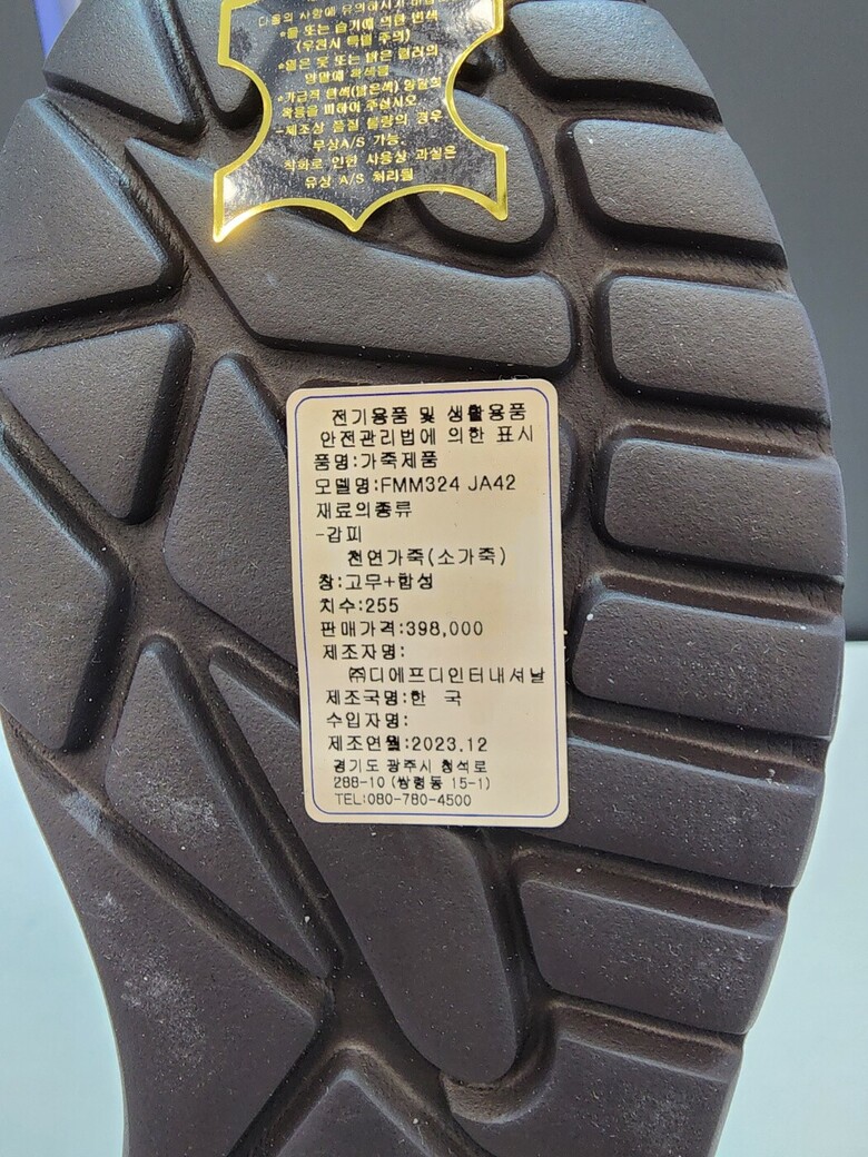 | 1. 제품 소재 (운동화인 경우에는 겉감, 안감을 구분하여 표시) | 소가죽 |