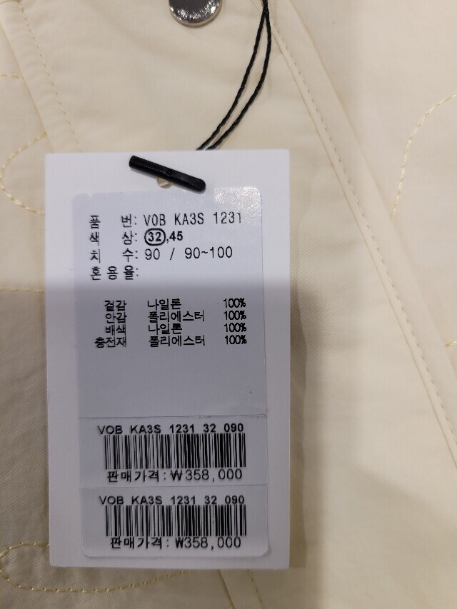퀼팅자수경량패딩점퍼VOBKA3S1231