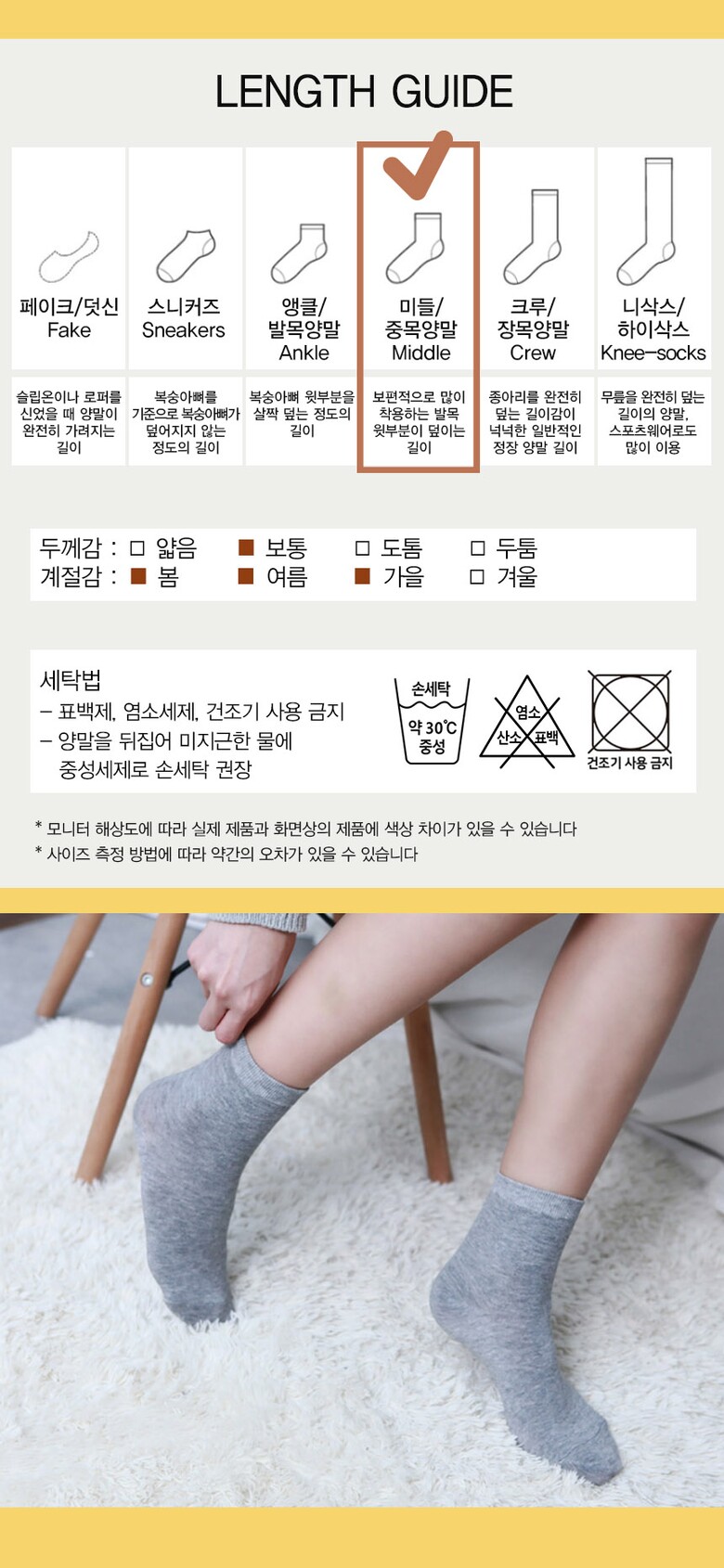 국산23여자 깔끔 중목양말 1켤레 사계절양말