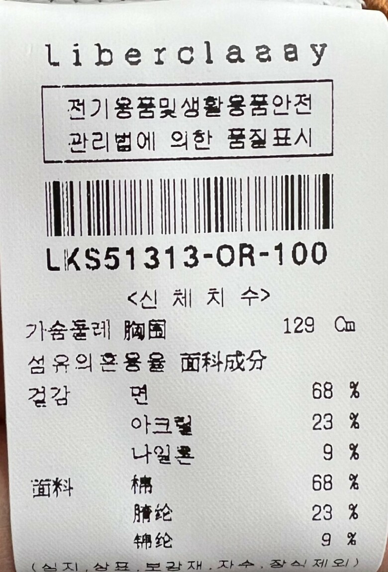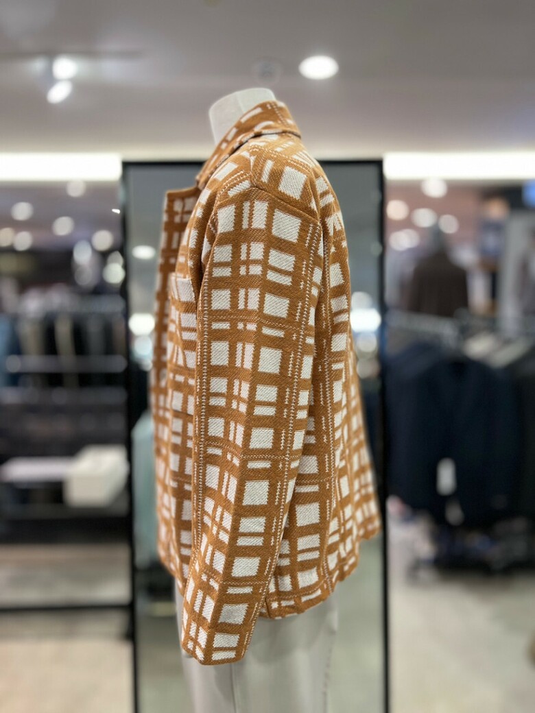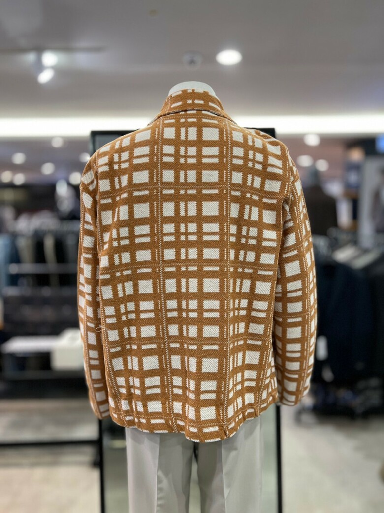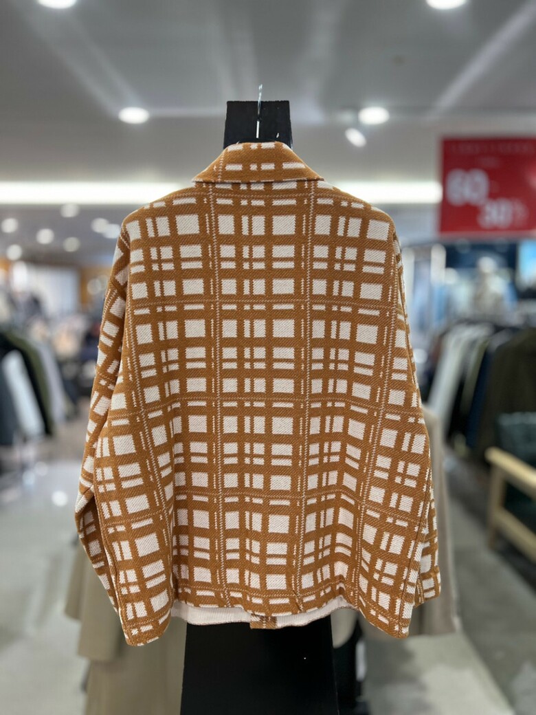 리버클래시 오렌지 체크 카라넥 오버핏 니트 자켓 LKS51313