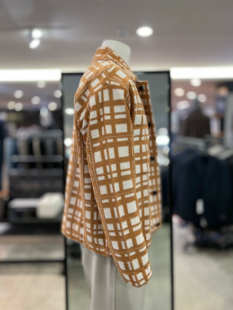 오렌지 체크 카라넥 오버핏 니트 자켓