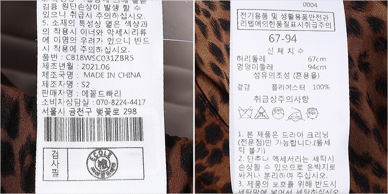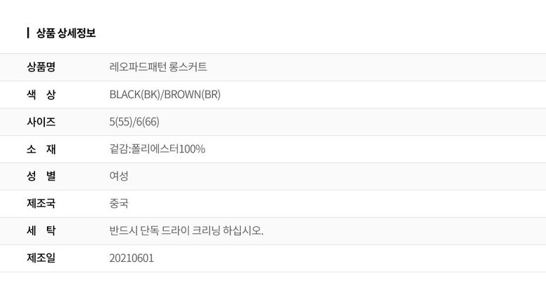 | 6. 세탁방법 및 취급시 주의사항 | 상세페이지 참조 |