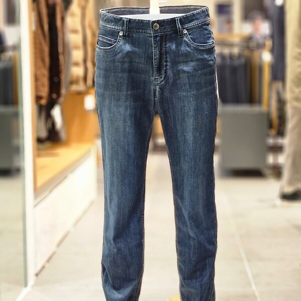 - 간절기 착용에 용이한 두께감과 스탠다드 핏의 기본 블루 워싱 데님.