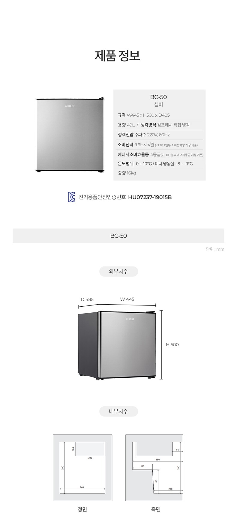 | 1. 모델명(품번) | 미니냉장고 BC-50 |