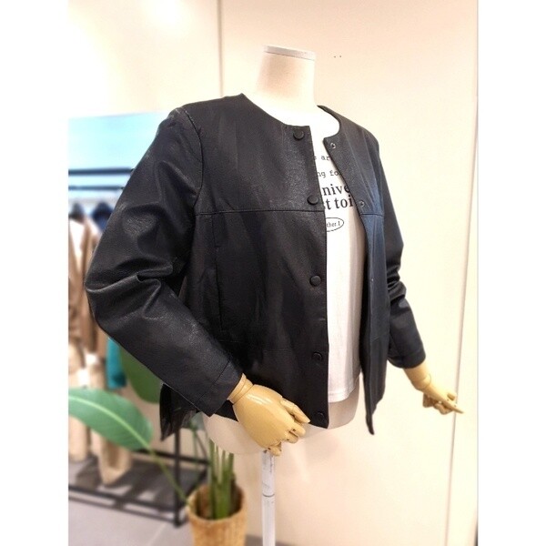 노카라넥의 가죽자켓입니다. 두껍지 않아 가볍고 간편합니다.
