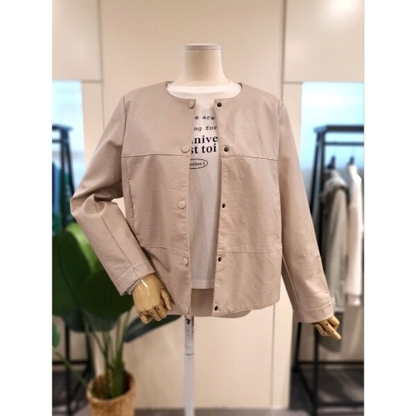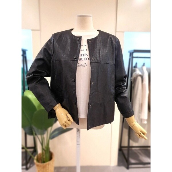 KNLTN901_라운드 넥 에코 가죽 자켓 블랙