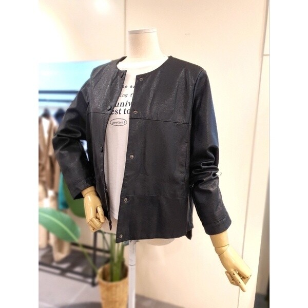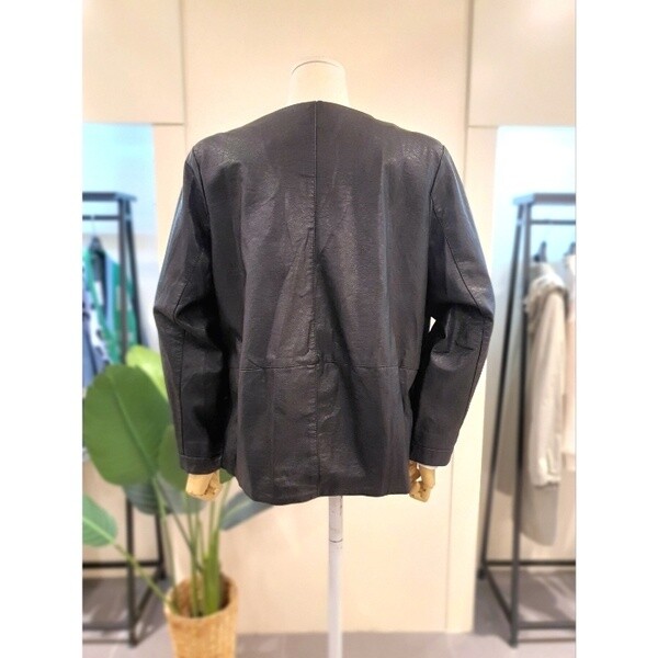 KNLTN901_라운드 넥 가죽 자켓 블랙