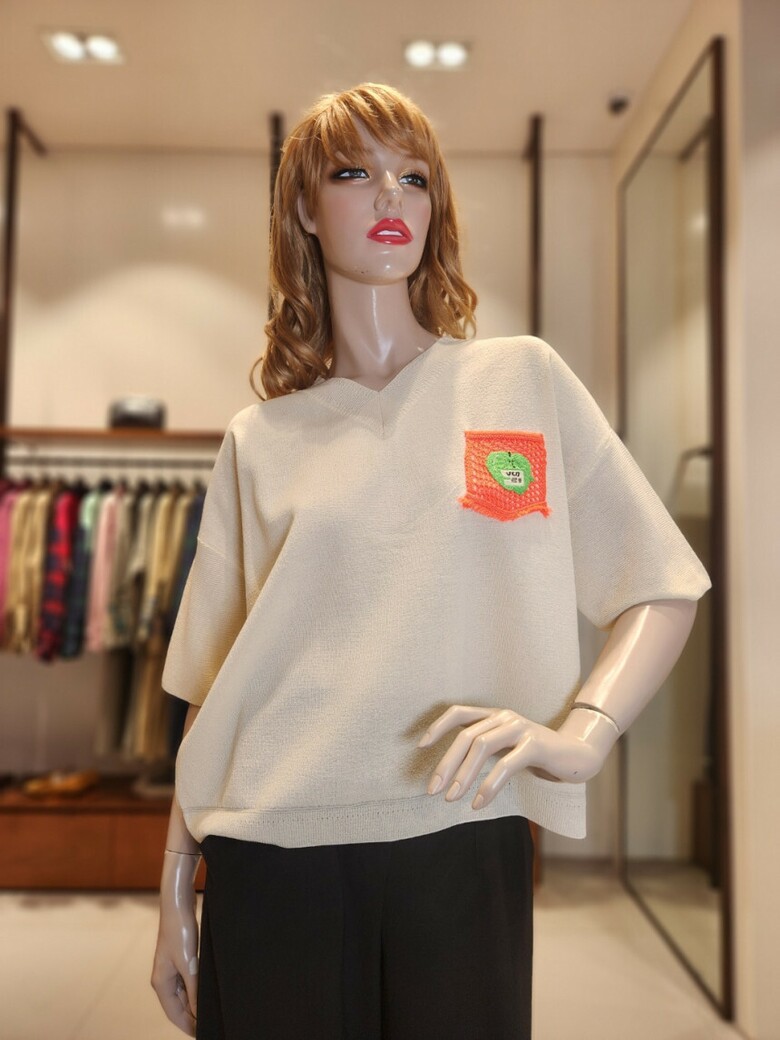 브이넥 네트라인에 루즈한 핏으로 나왔으며
