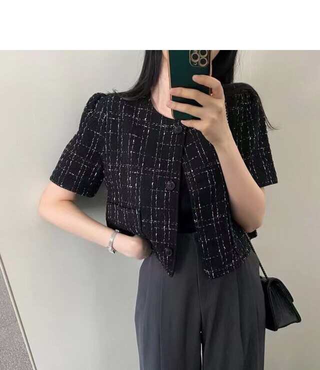 로켐 2color 반팔 트위드 자켓_240330_SJ23
