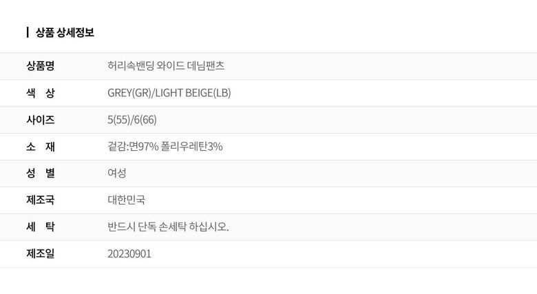 [미센스] 허리속밴딩 와이드 데님팬츠_MB3XDPM301Z