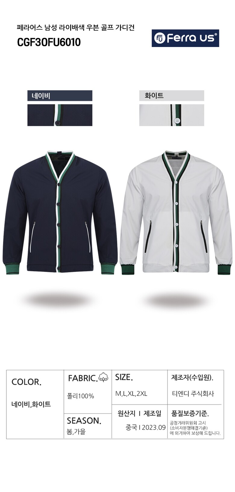 보스케 남자 봄 가을 골프 브이넥 배색 니트 가디건 T191182