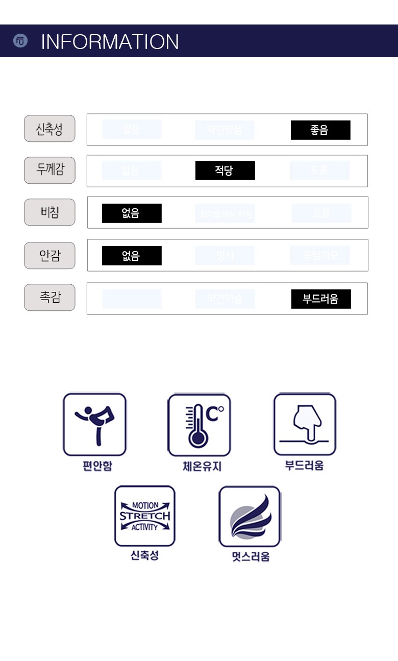 | 1. 제품 소재 (섬유의 조성 또는 혼용률을 백분율로 표시, 기능성인 경우 성적서 또는 허가서) | 상세설명참고 |