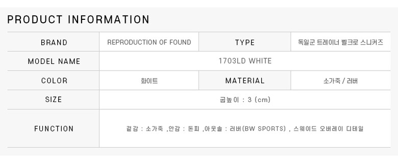 리프로덕션오브파운드 1703LD WHITE GERMAN MILITARY VELCRO TRAINER 독일군 트레이너 루프 패스너 공용 스