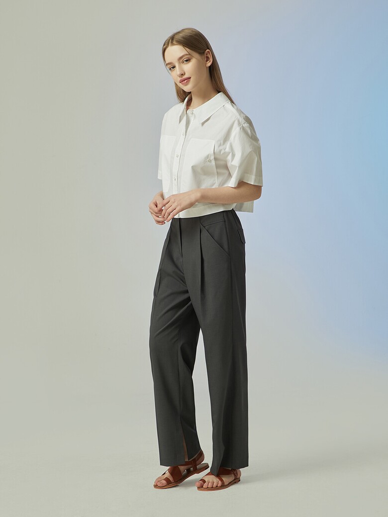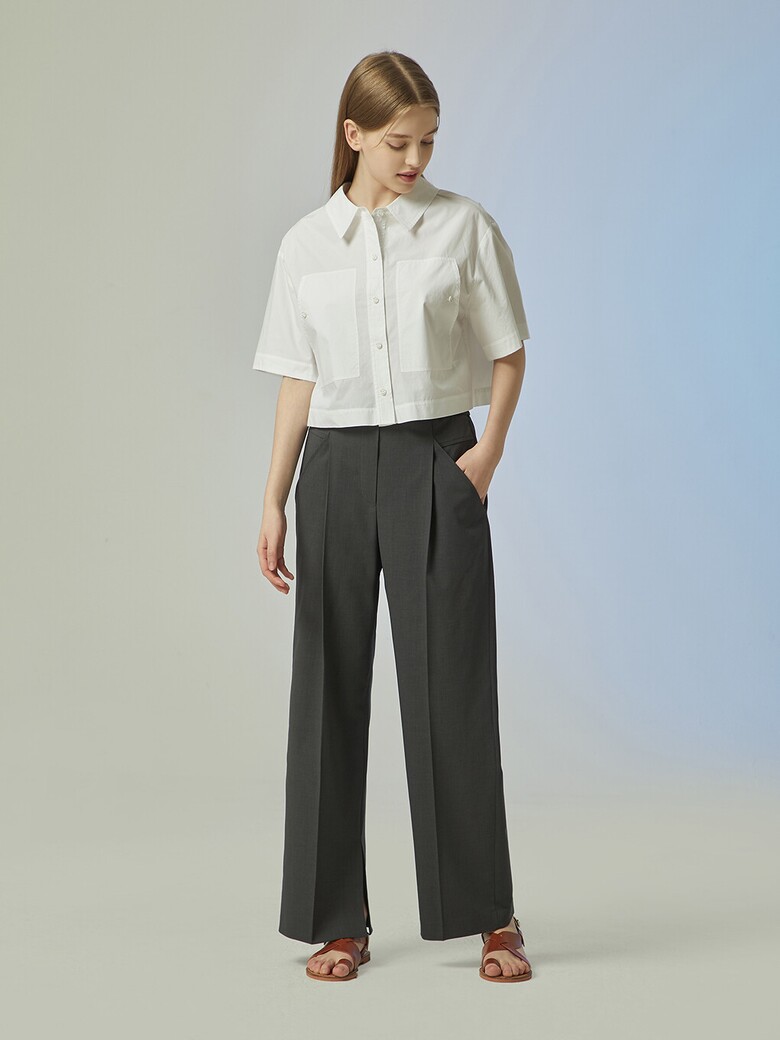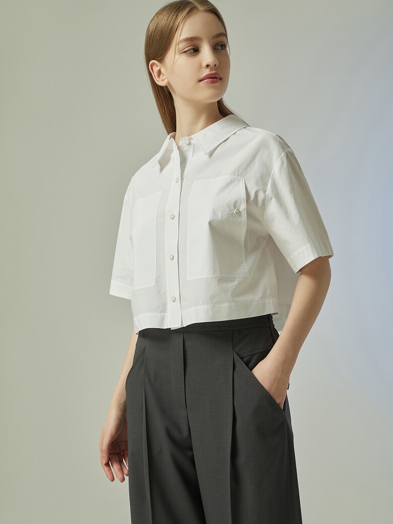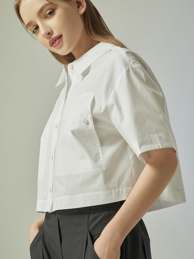 CC collect. 빅 포켓 코튼 크롭 셔츠_C232PSC052