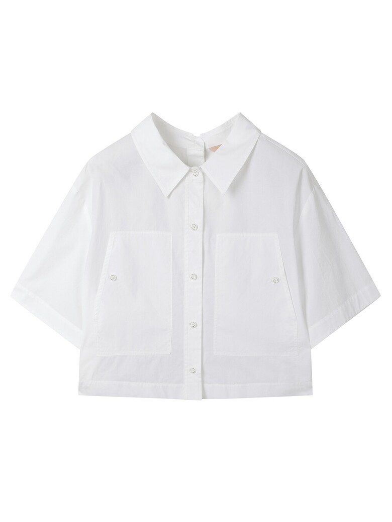 전면 빅 포켓이 포인트가 되는 깔끔한 실루엣의 크롭 셔츠입니다.