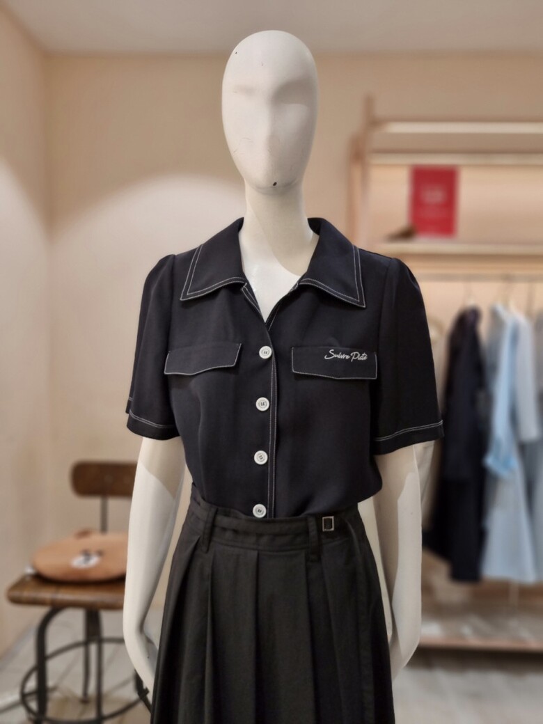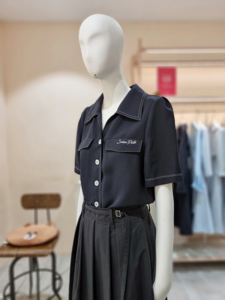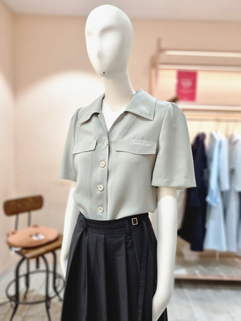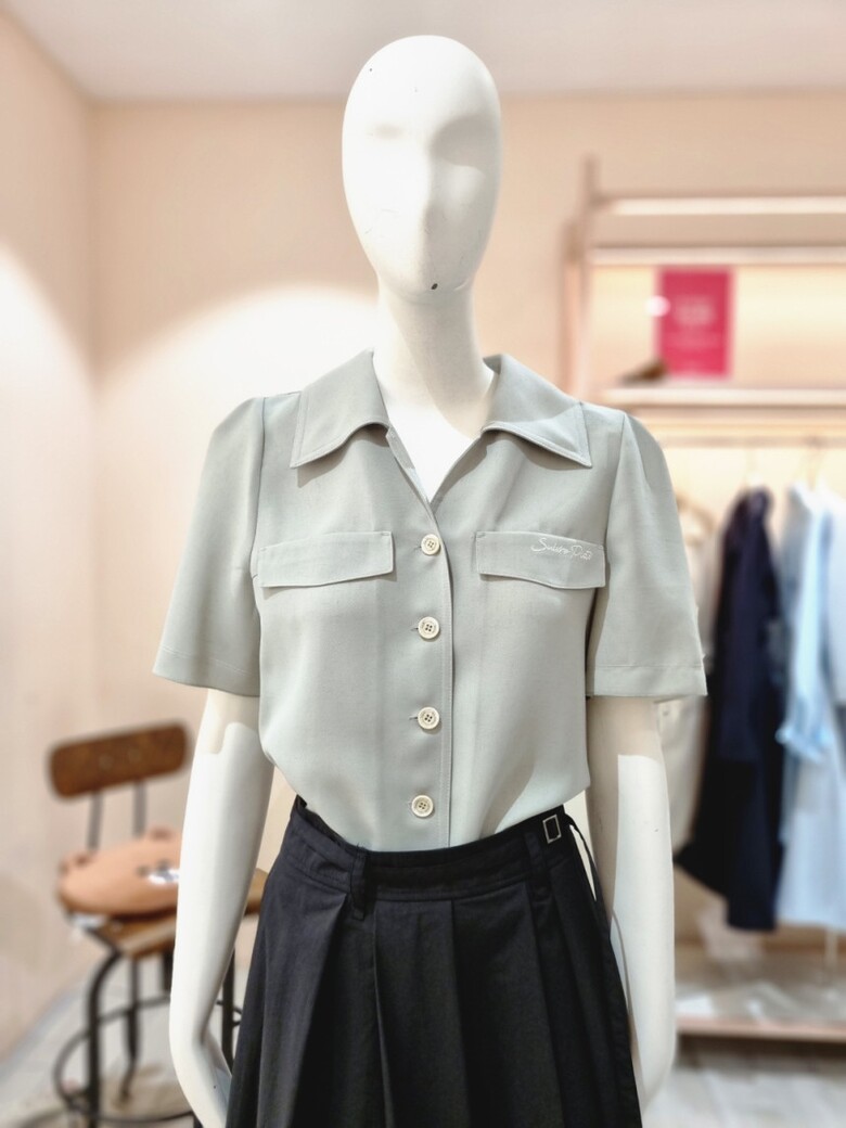 레터링 자수 오픈 카라 블라우스 GP5M0BL921