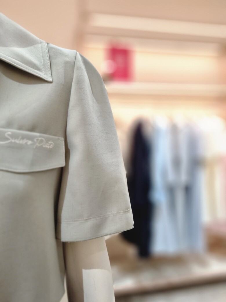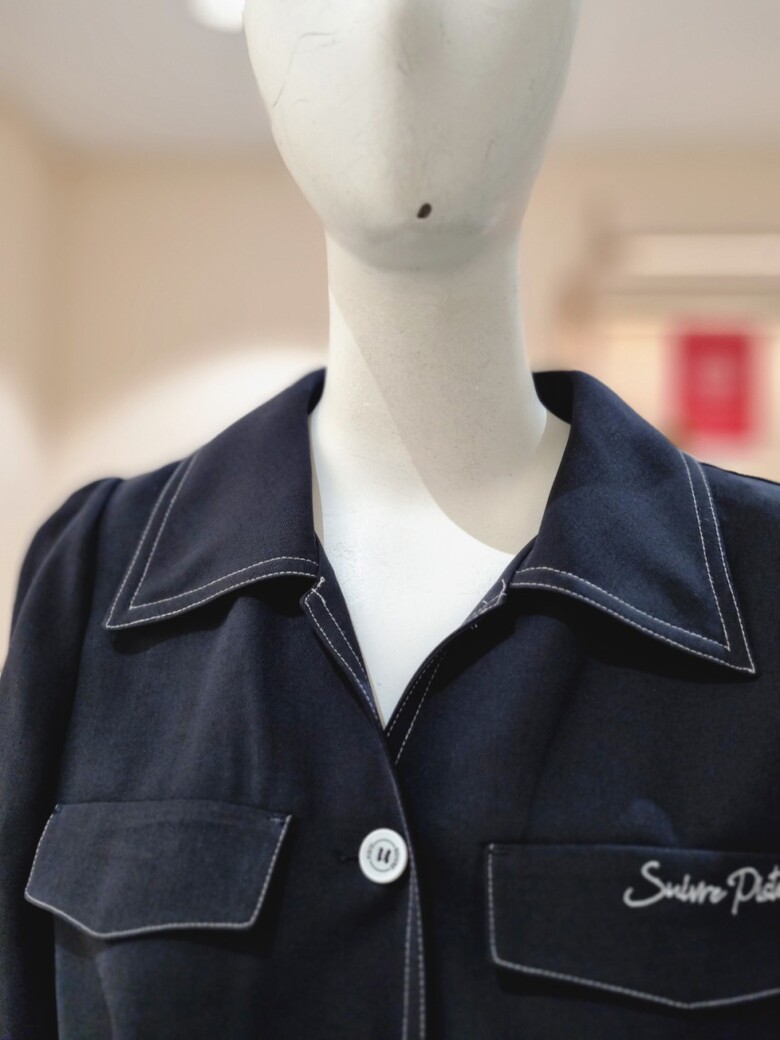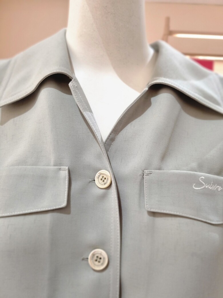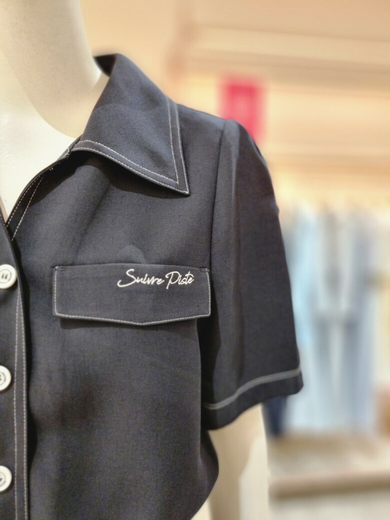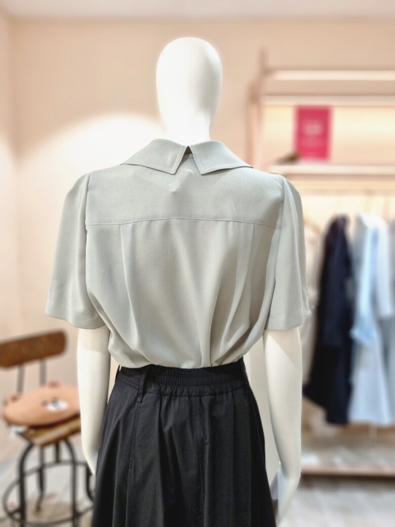레터링 자수 오픈 카라 블라우스 GP5M0BL921