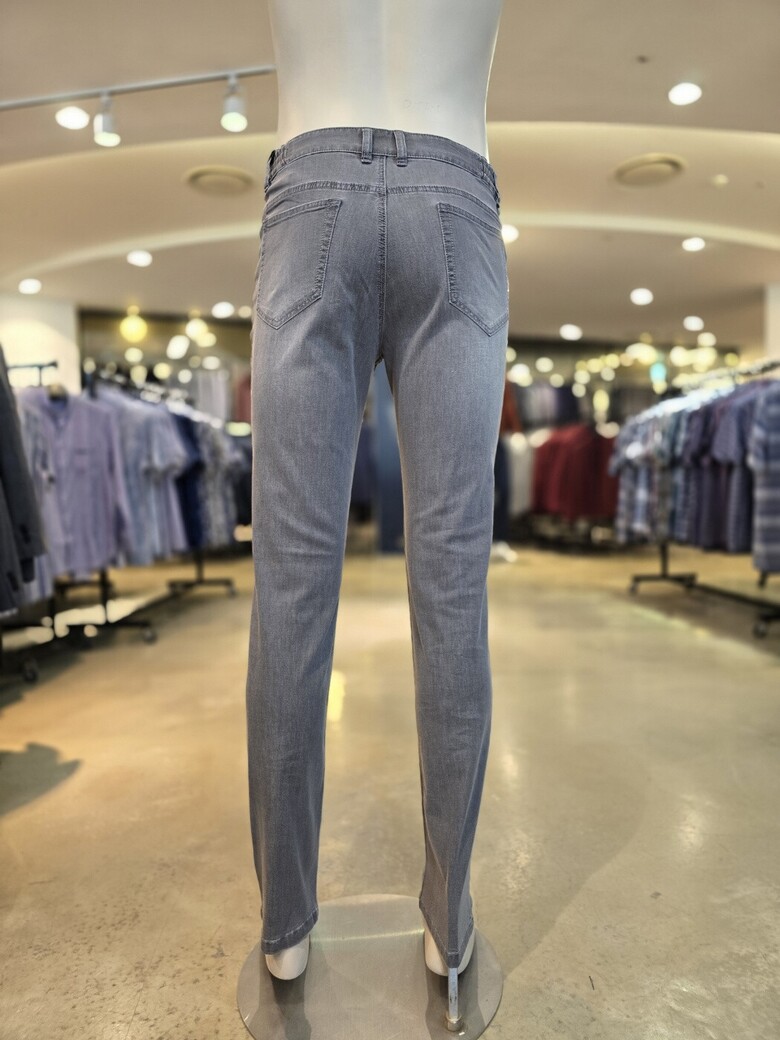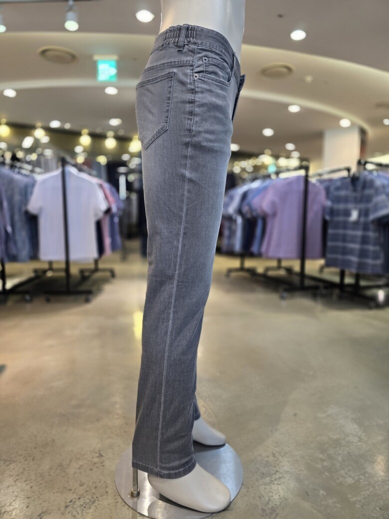 워싱이 되어있는 그레이컬러가 너무 멋스럽고 허리 사이드 옆 밴딩이 있어 허리 착용감이 편해요.