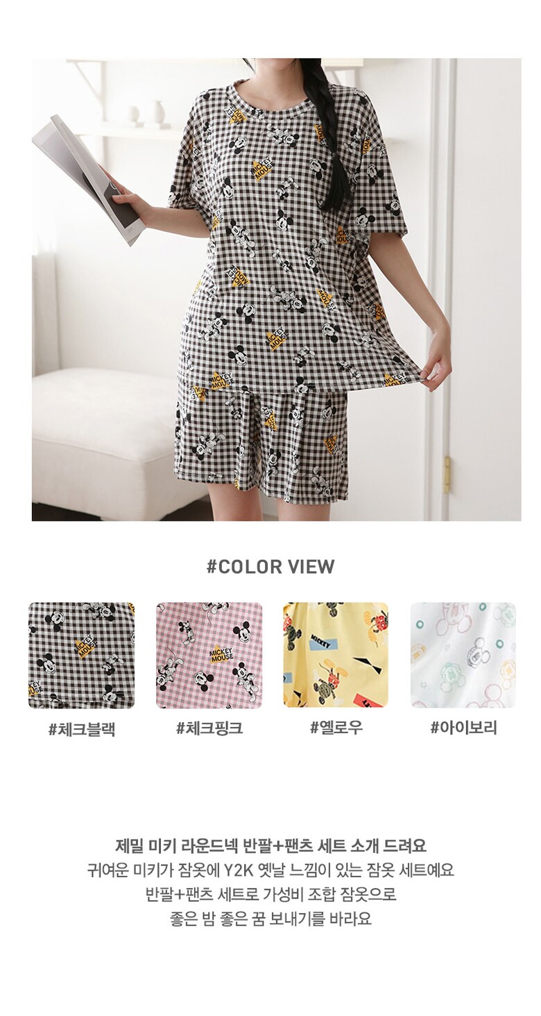 [~77까지]제밀 미키 라운드넥 반팔+팬츠 세트