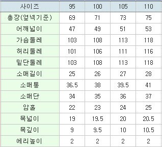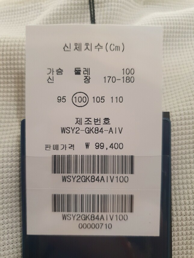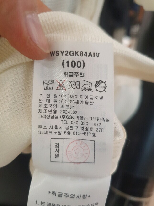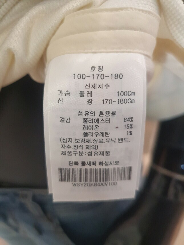 겉감 : 폴리에스터 84% , 레이온 15% , 폴리우레탄 1%