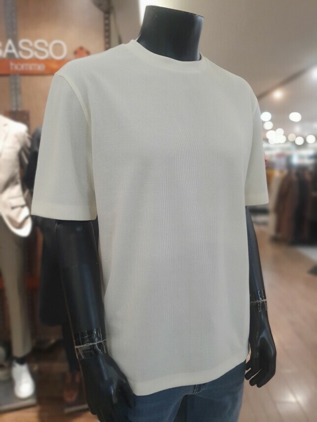 [바쏘옴므] WSY2-G K 84-AIV 24년 와플패턴 사방스판 세미 오버핏 반팔 티셔츠