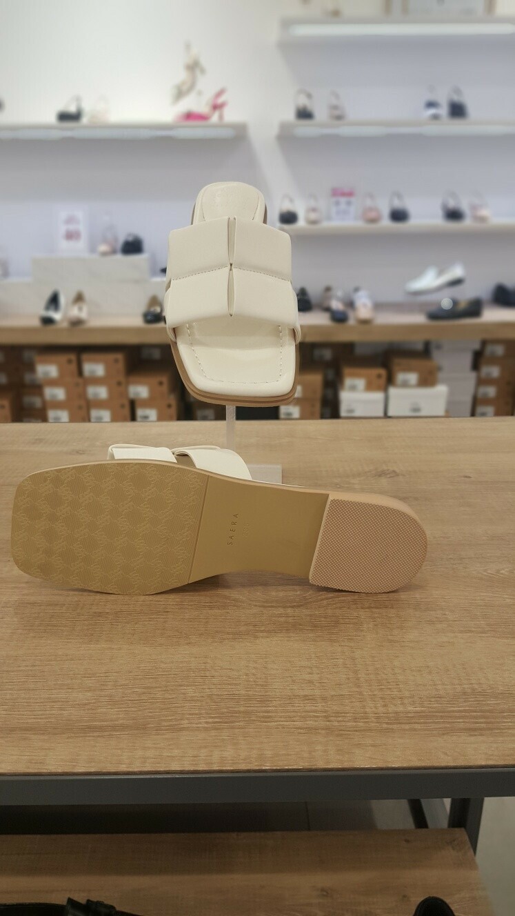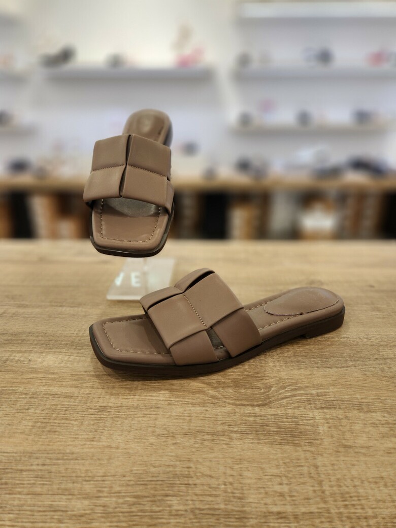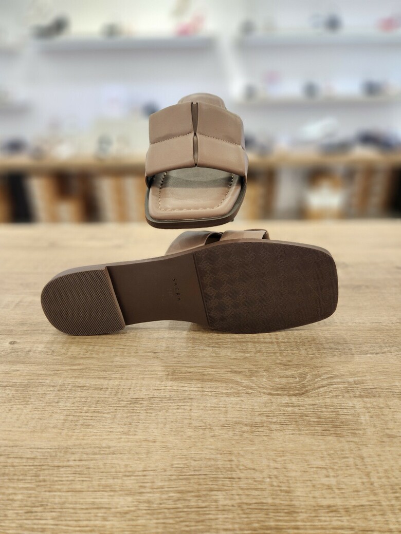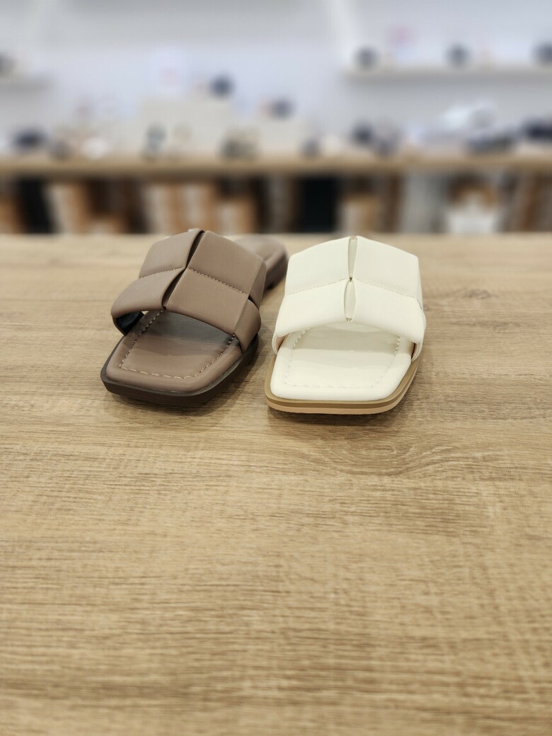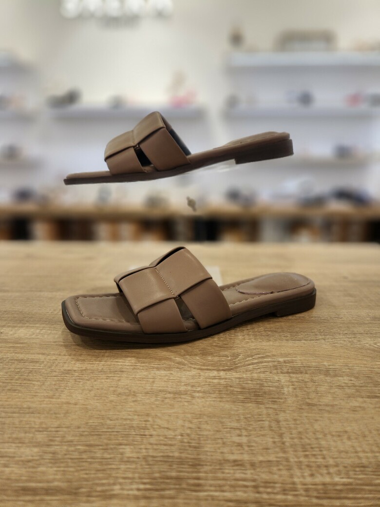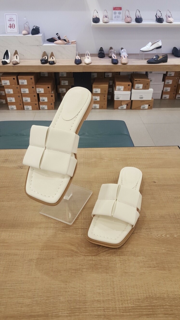 [세라] (2color) 플랫 양가죽 여성 스퀘어 세미 슬리퍼 샌들 c24m507