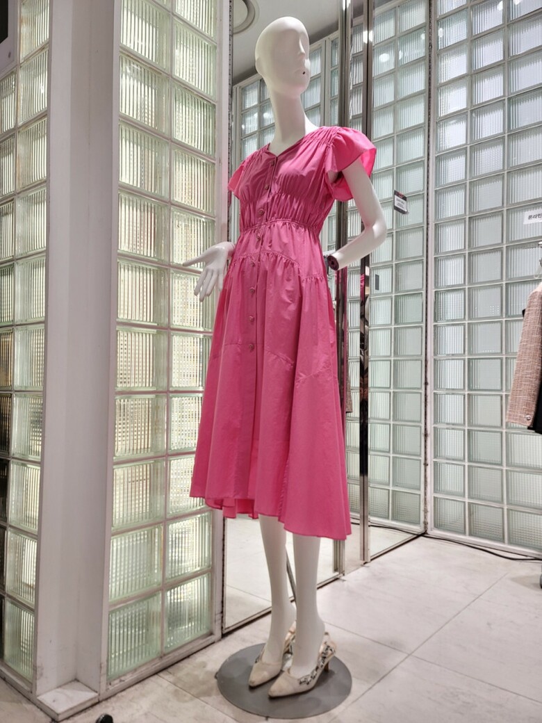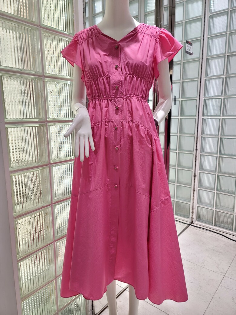 ZOOC 핑크 셔링 러플 롱원피스 Z232MSE032