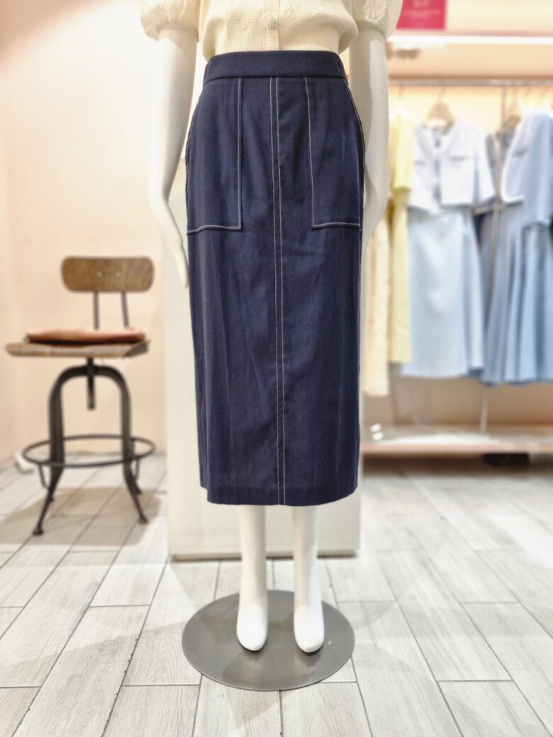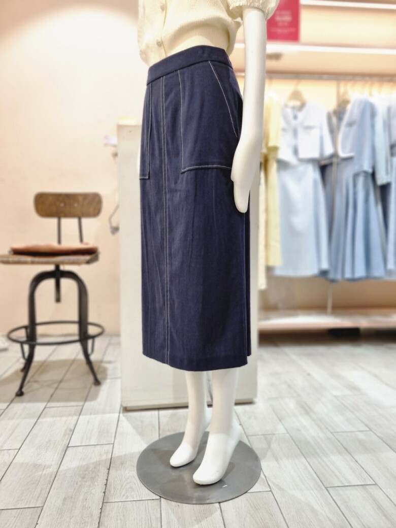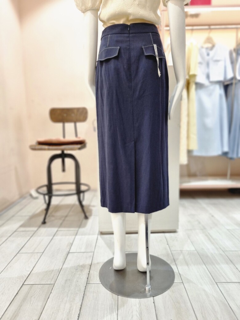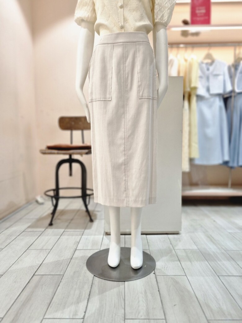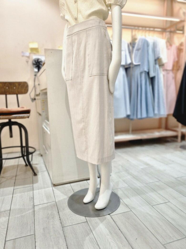 테이프 장식 H라인 린넨 스커트 GN6A0SKR1