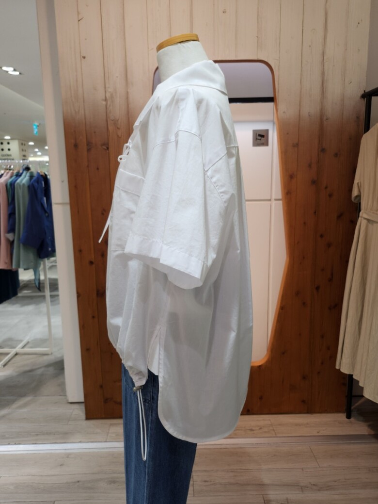 얇고 가벼운 코튼 소재의 하프 슬리브 블라우스입니다.