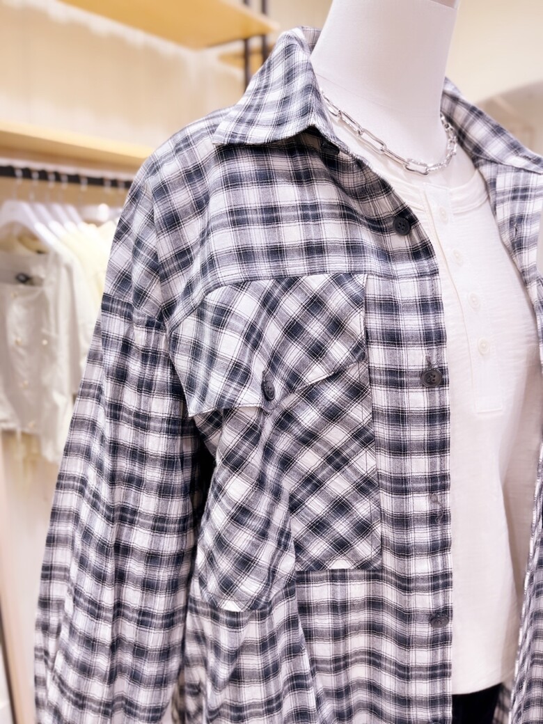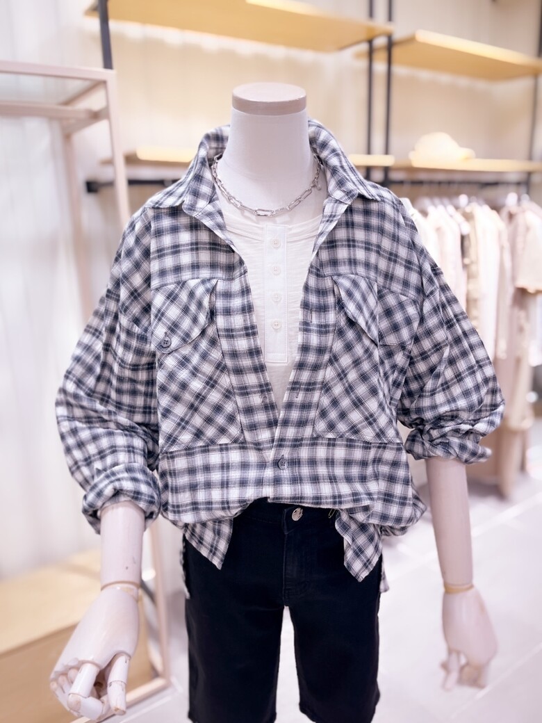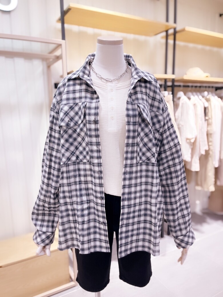 깔끔한 카라에서 이어지는 중앙 스냅 버튼으로탈착용이 용이하며,단품으로도 아우터로 다양하게 연출하기 좋습니다.바스트 한켠에 아웃포켓 디테일이밋밋하지 않게 포인트가 되어주며사이드 양쪽으로도 포켓이 있어 간단한 수납성까지 더해준 디자인입니다.박시한 핏감으로 편안하게 입기 좋은 셔츠입니다.?*넉넉한 핏으로 오버핏을 선호하시는 고객님께 추천해 드립니다.*