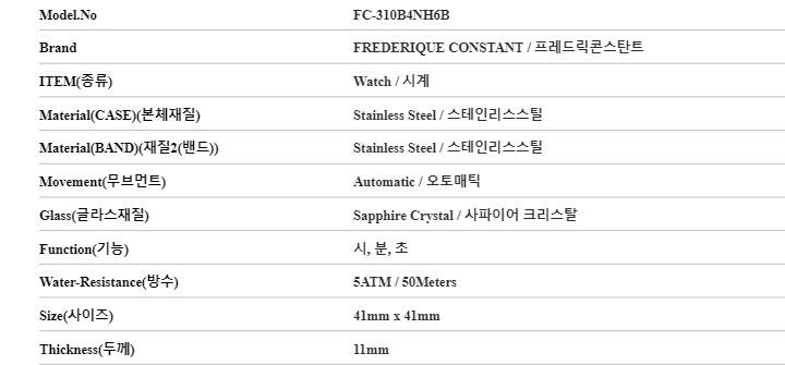 | 3. 제조사 | 프레드릭콘스탄트/(주)언커먼레이블-병행수입 |