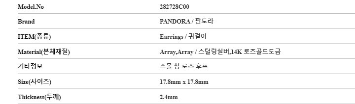 판도라 귀걸이 282728C00 모먼트 스몰 참 로즈 후프 여성귀걸이 당일발송