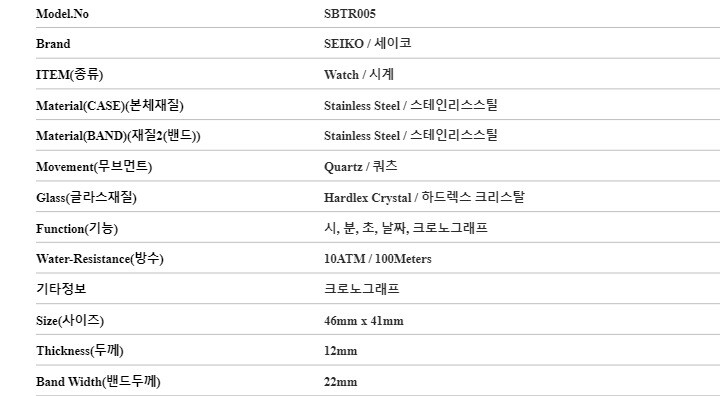 세이코 시계 SBTR005 스피릿 크로노그래프 타키미터 메탈시계 남성시계 남자시계 당일발송