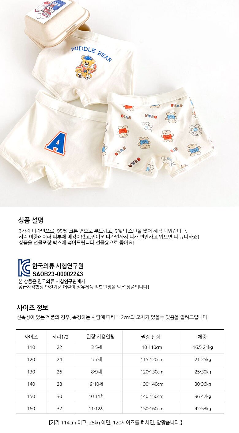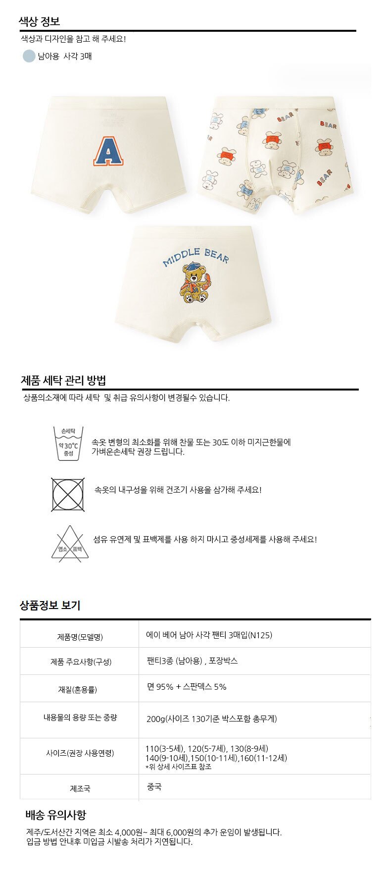 A베어 남아 사각팬티 3매(N125)+선물포장