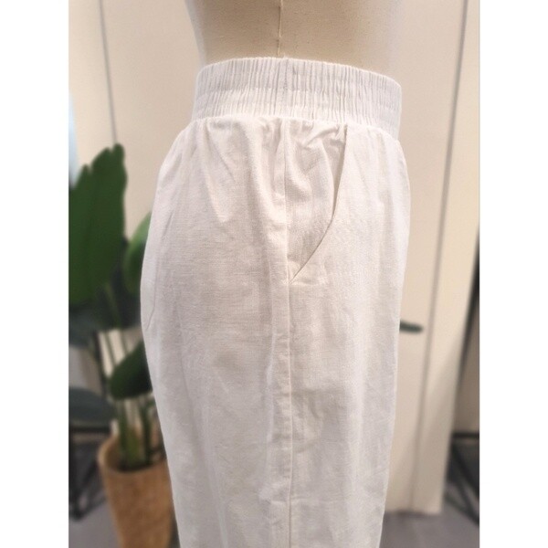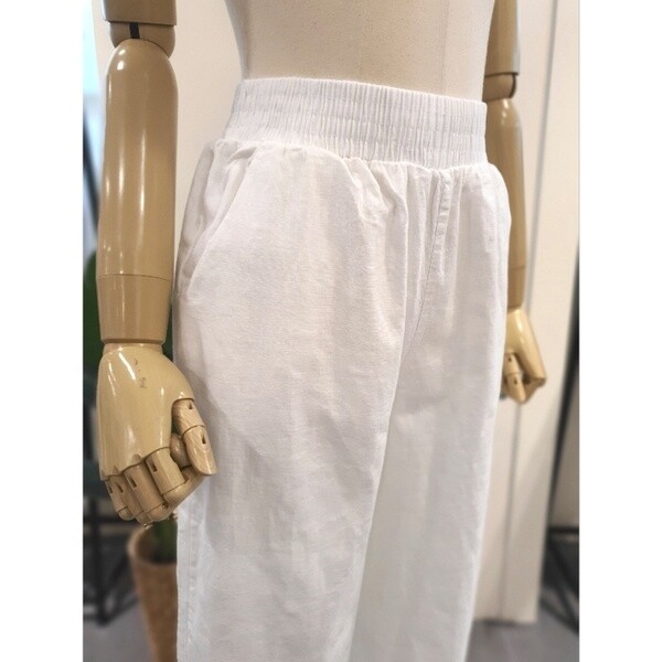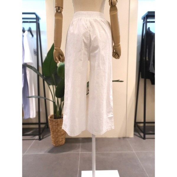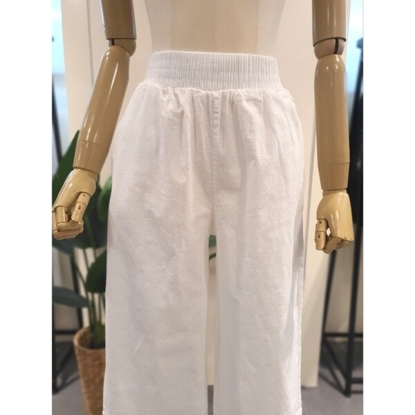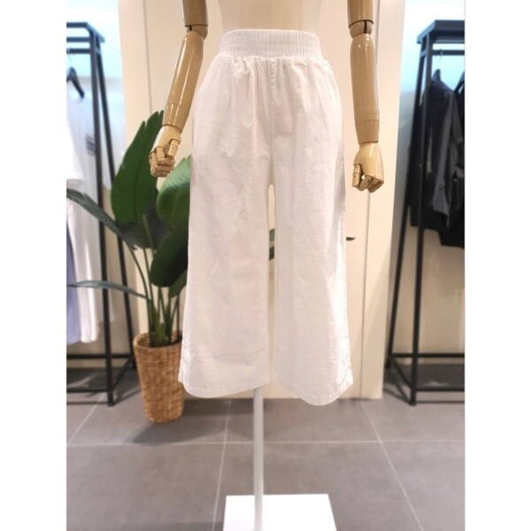 KNPTO502_와이드 린넨 밴딩 7부 팬츠 아이보리