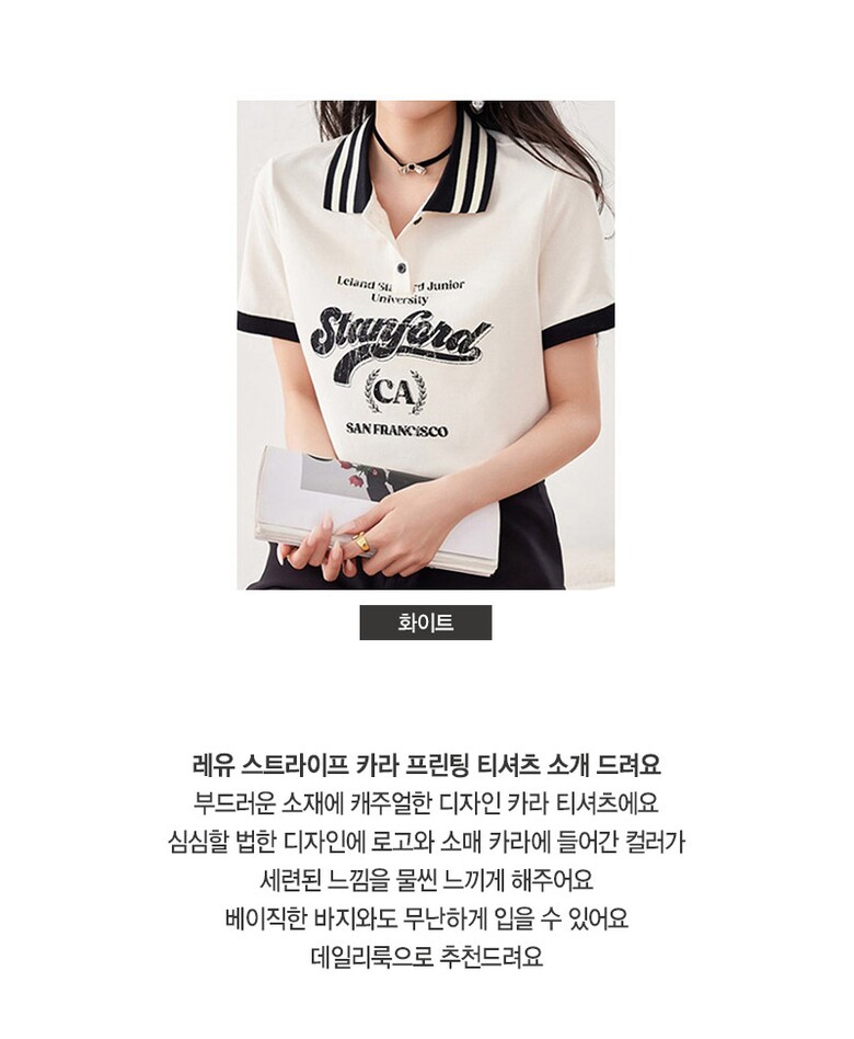 [~77까지]레유 스트라이프 카라 프린팅 티셔츠