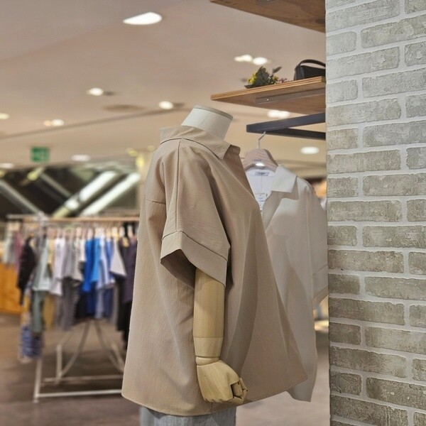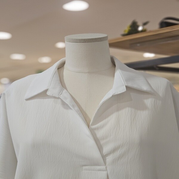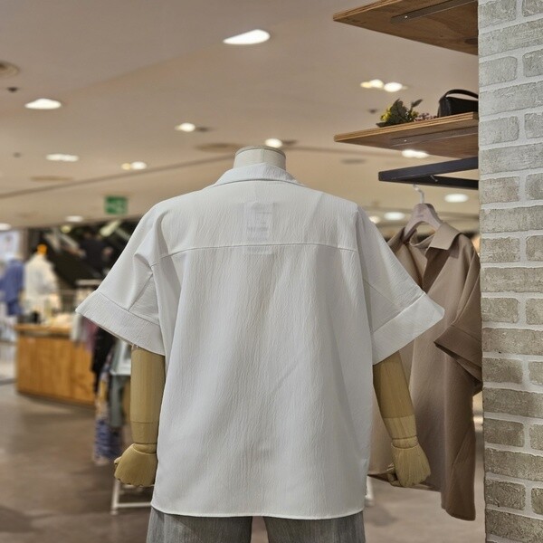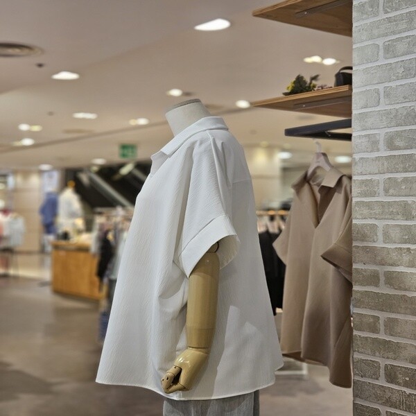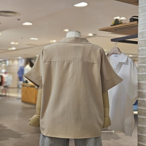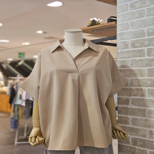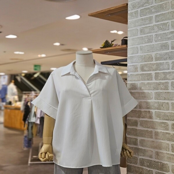 LC41C8BL009X_오픈 카라 반팔 블라우스