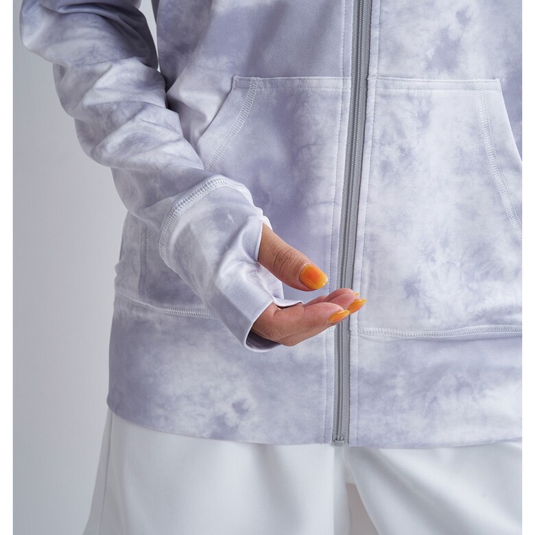오버핏 제품으로 체형 커버에 탁월하며, 소매 부분 핑거 홀 디테일로 수중 스포츠 활동 시 소매가 올라가는 현상을 방지 시켜 줍니다.