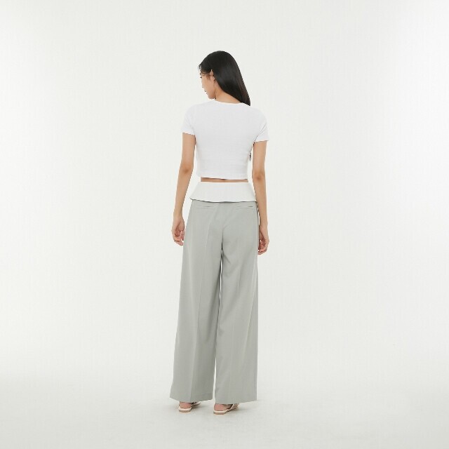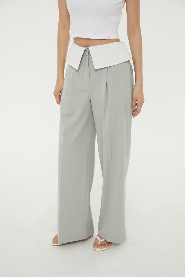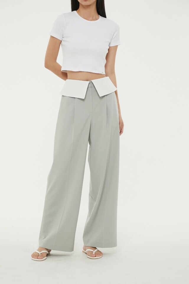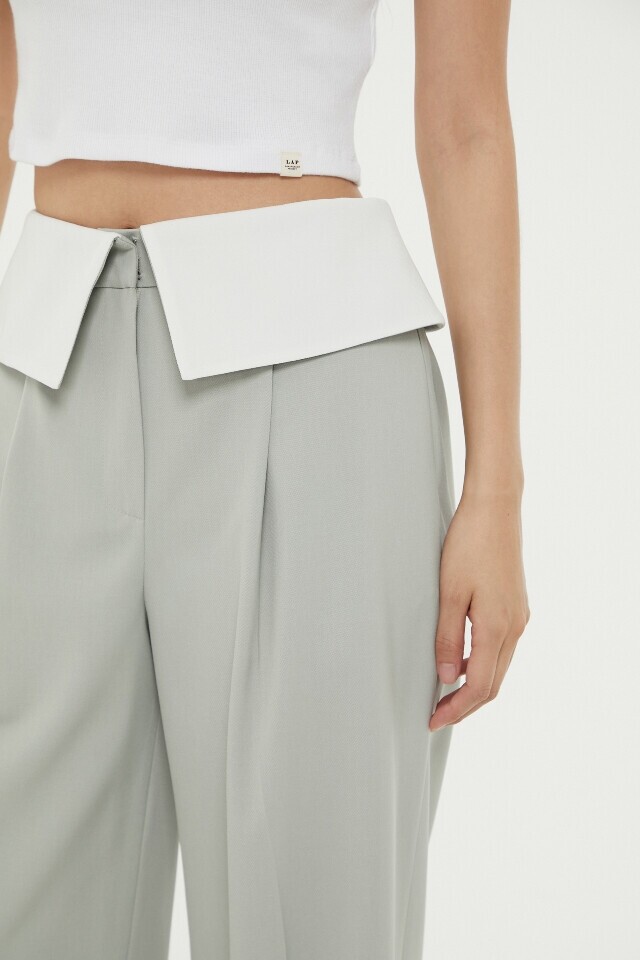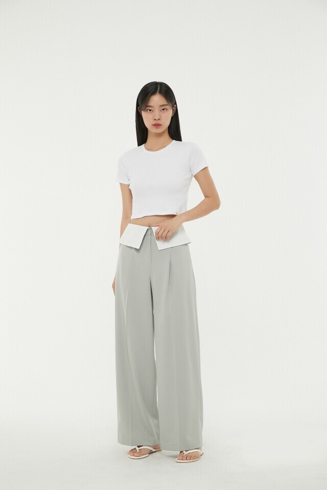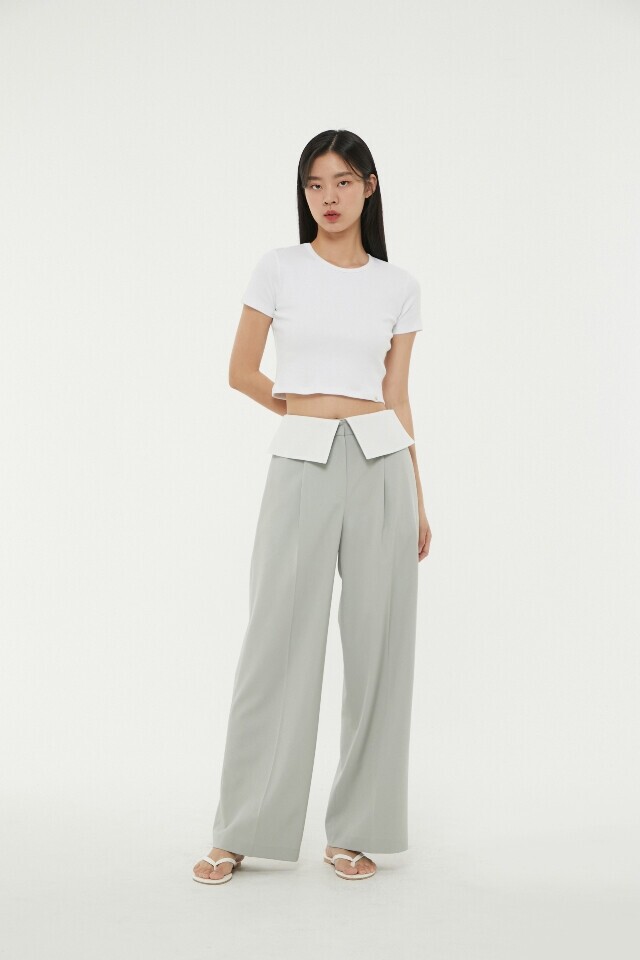 허리 턴 업 배색 와이드 팬츠 ~