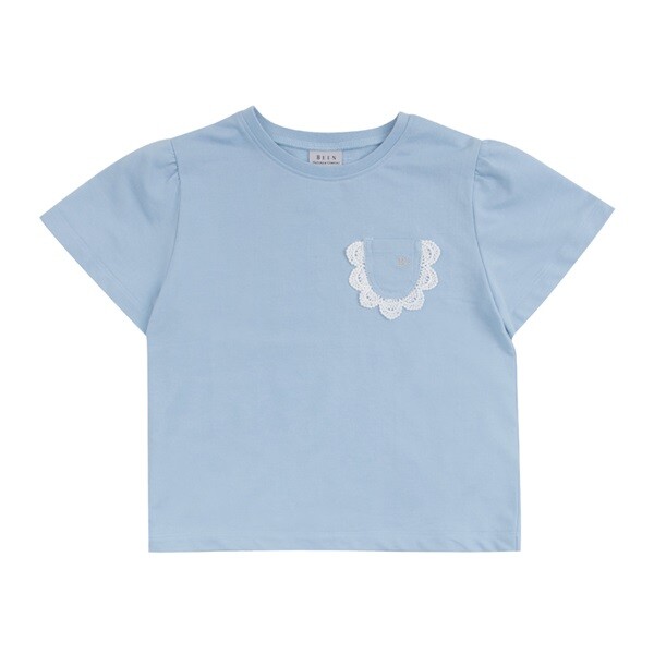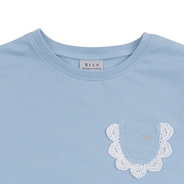 스카이 블루 컬러와 어울리는 화이트 컬러의 레이스 포켓 장식을 더해