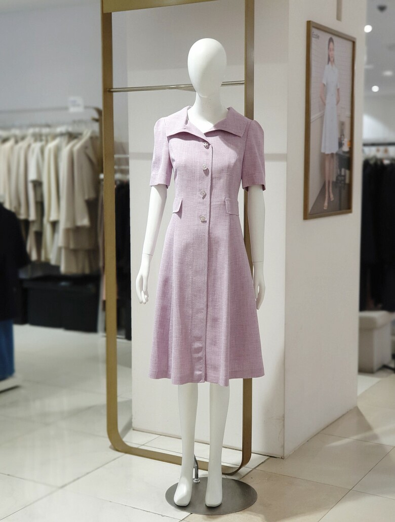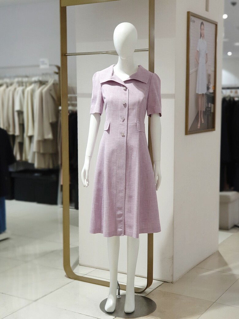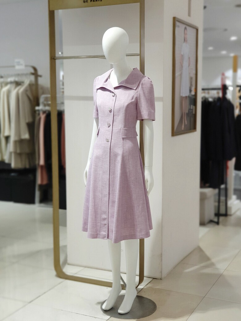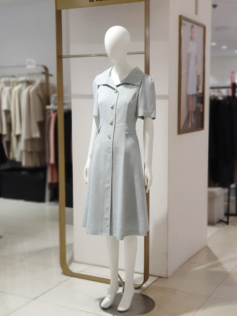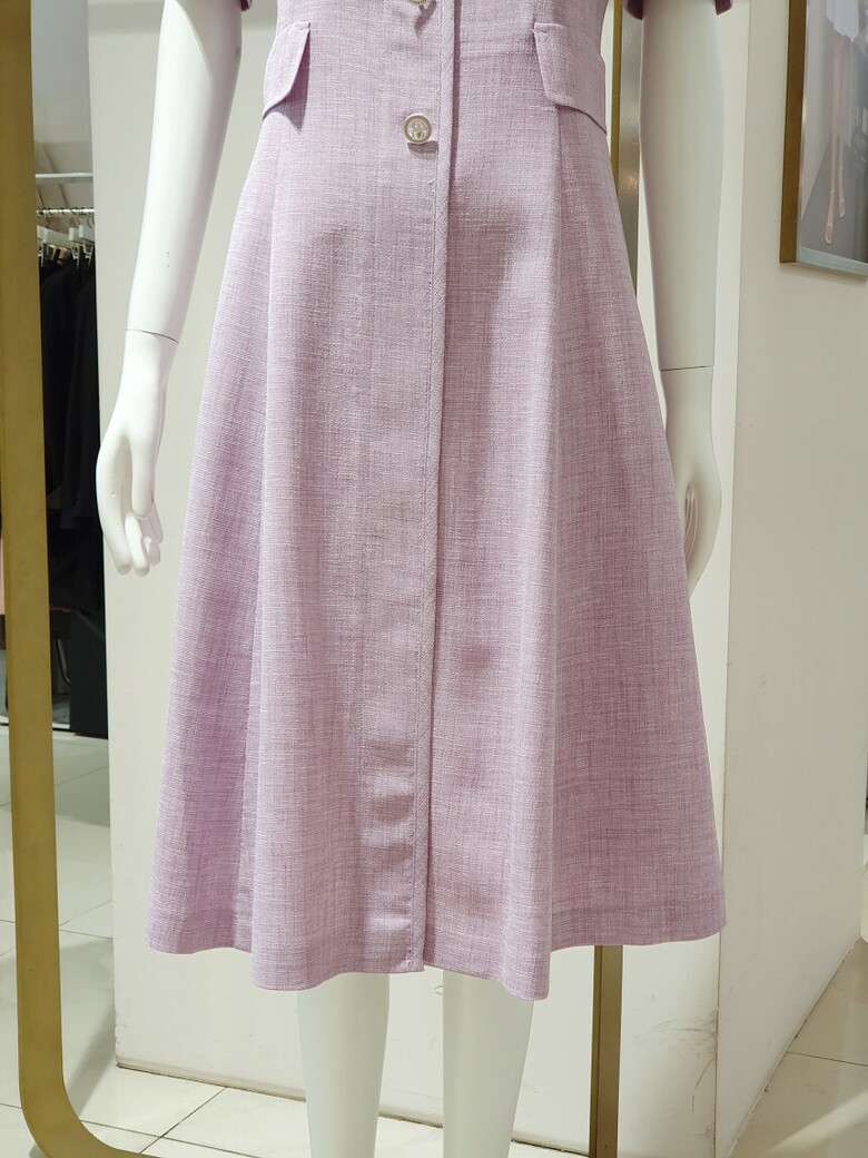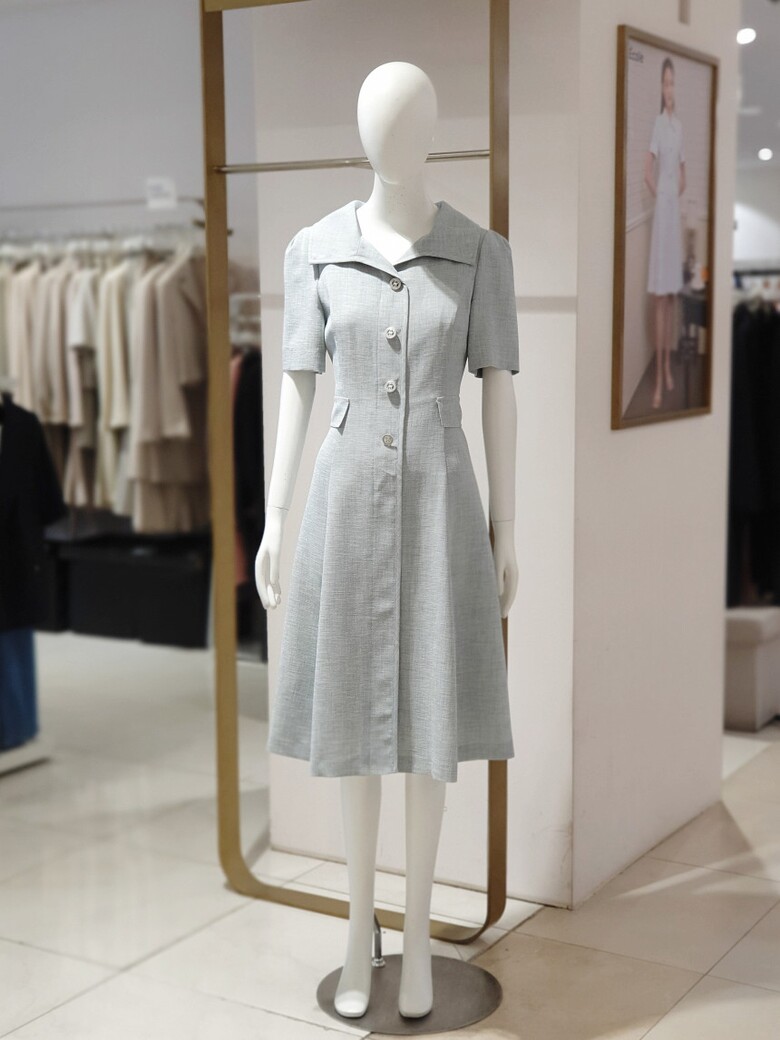 절개 라인을 따라 버튼 장식 디테일로 포인트 연출해 주는