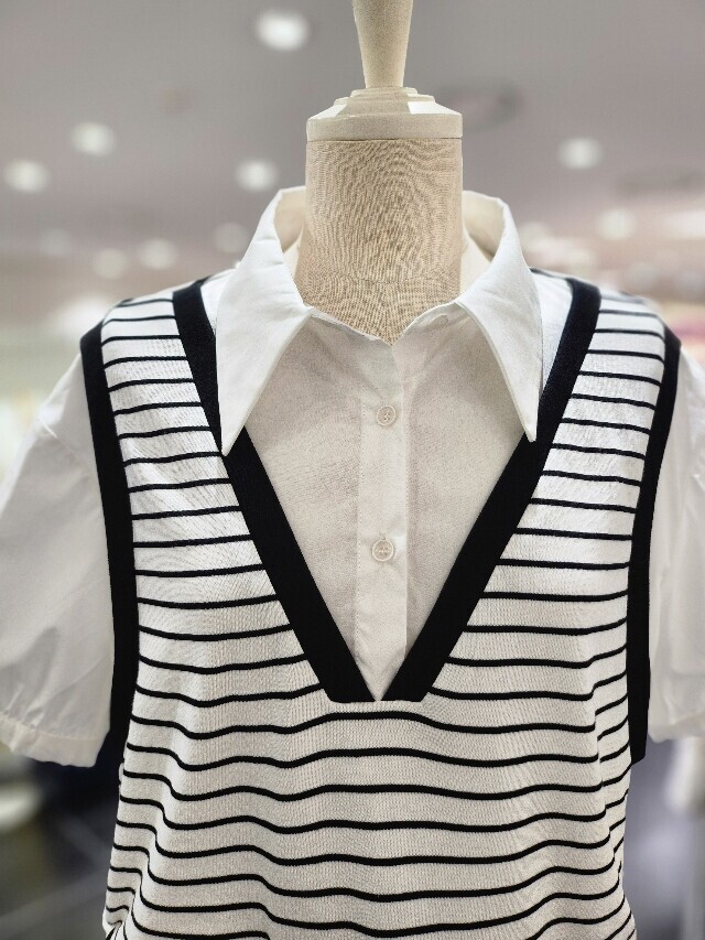 니트 베스트 레이어드 셔츠S242k271