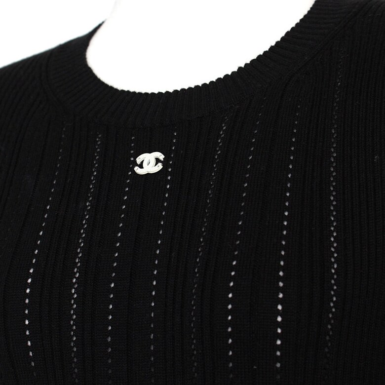 샤넬 블랙 순면 니트 상의를 선보입니다.
