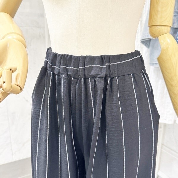 F4BPT066A_줄지 밴딩 와이드 팬츠