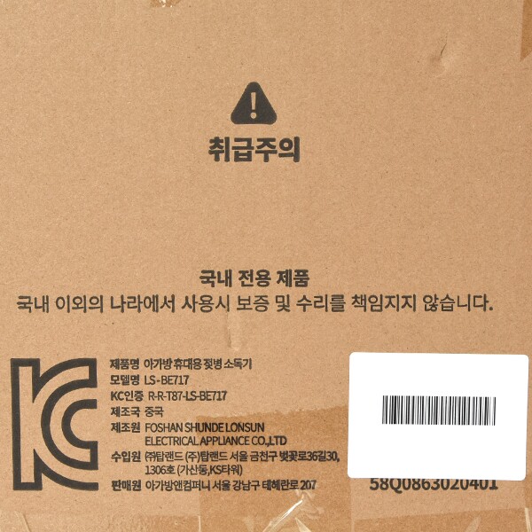 품명 및 모델명 : 아가방휴대용젖병소독기R