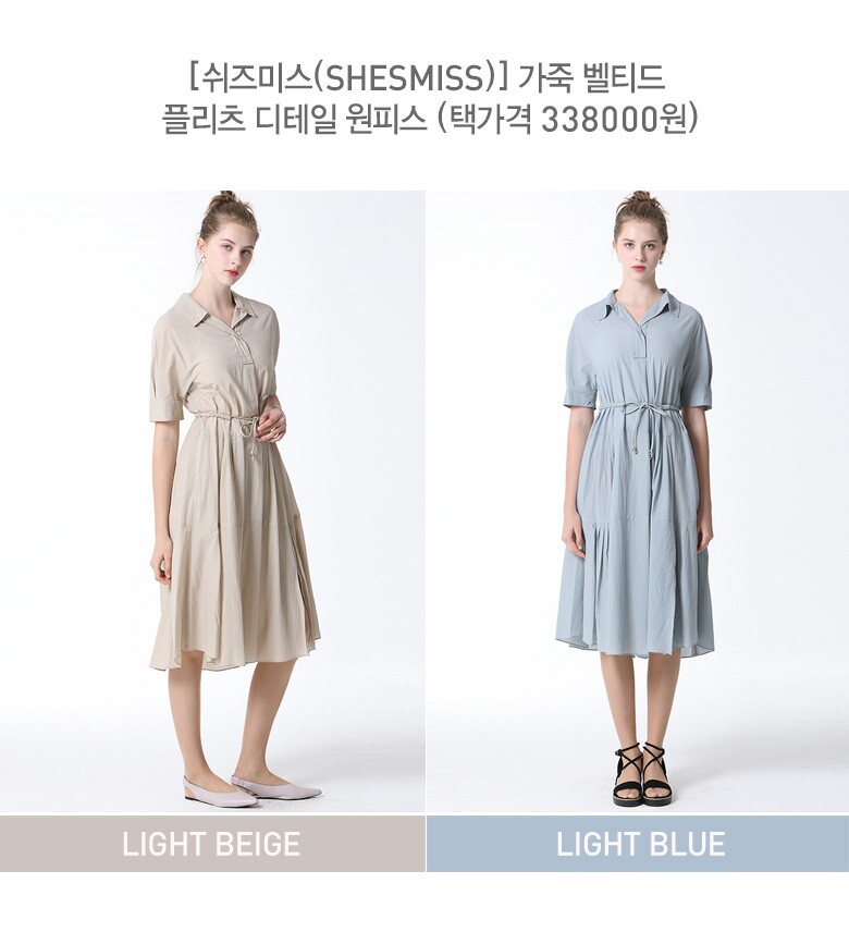 ▶ ITEM : 가죽 벨티드 플리츠 디테일 원피스 ▶ NUMBER : SWWOPM21040 ▶ FABRIC : [겉감] 레이온 55%, 나일론 42%, 폴리우레탄 3% [벨트] 폴리에스터 50%, 폴리우레탄 50% ▶ WASHING : 단독드라이(이염.필링.고온건조 다림질불가) ▶ 원 산 지 : 중 국 ▶ 색 상 : 라이트베이지(LB),라이트블루(LL),라이트카키(LK)