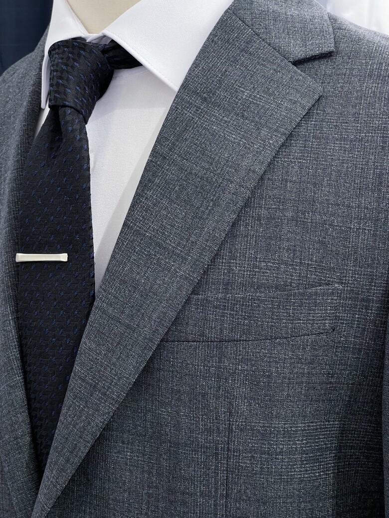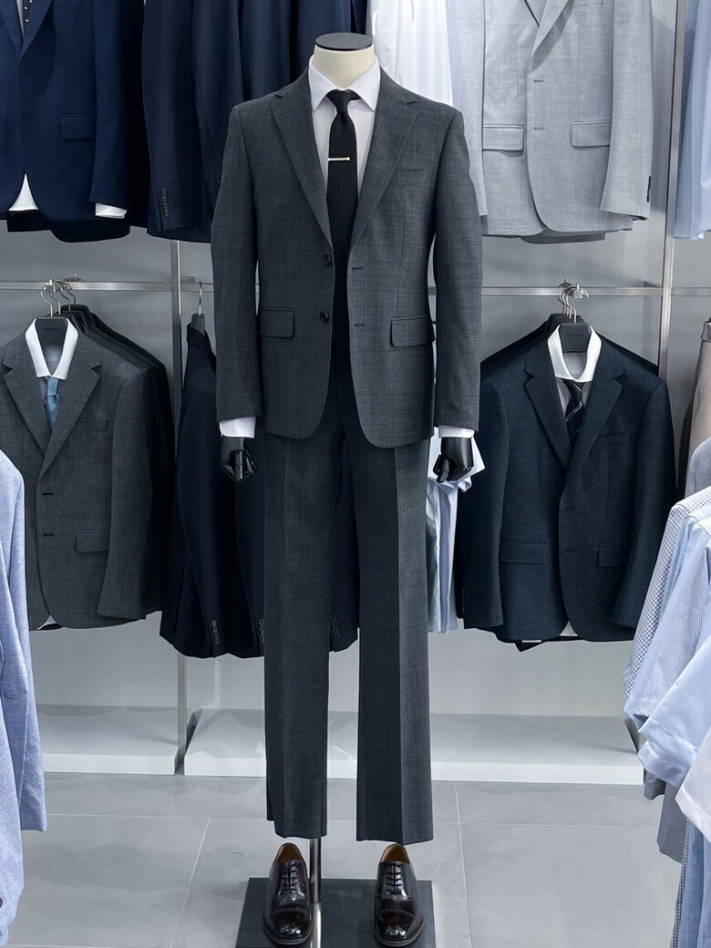 편안하면서도 깔끔한 스타일의 정장입니다.